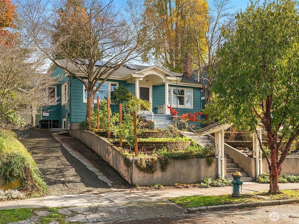In the sweet spot of Phinney Ridge lies this delightfully updated pad. Sited on the light-filled west side, this home offers a new sauna, solar panels, EV chgr, seismic retrofit, elec panel/wiring, roof, gutters & ext. paint. A 2021 addition welcomed a primary suite w/atrium-like bonus room that opens to a covered/heated patio & private garden. The ensuite bthrm has a heated flr, towel warmer, auto skylight & TOTO Washlet bidet. Large frml dining/living rms (w/frpl). Updated eat-in kitchen w/Wolf gas range. Guest bd/bth in main. 3rd bdrm down + laundry, storage, sauna & bonus area. D-P wndws. Insulated/clean crawl/attic. Mature plants & apple trees. Stroll to the zoo, Ken's Mkt, eats & coffee, library & hardware, Phinney Ctr & farmers mkt.