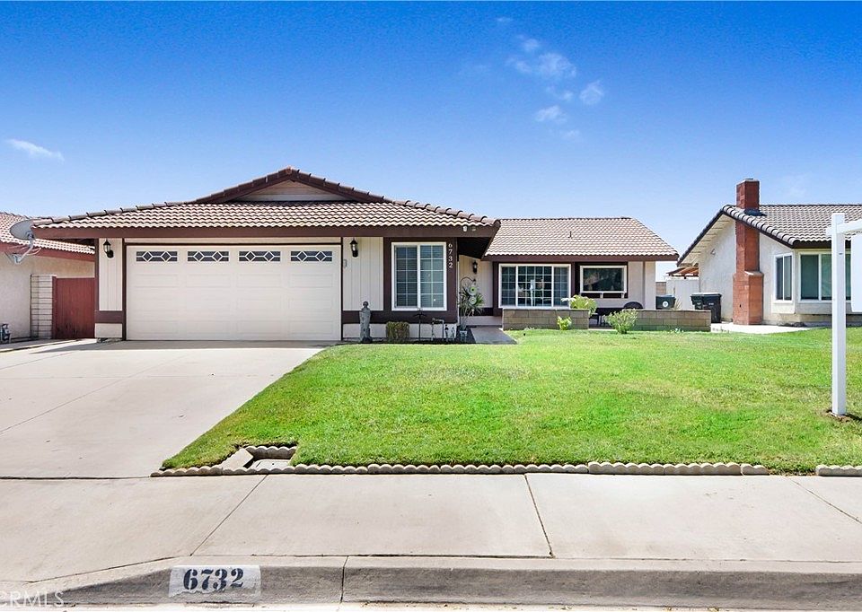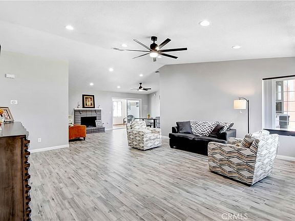 Don't look any further! This beautiful open floor plan single story home is just what you have been looking for! Newly painted and updated you will love this home! All you need to do is move in. You will even have room to build a pool if you would like as the back yard is huge! Features include new wood style style flooring, updated bathrooms, Newer Windows, a massive family/ living room, a cozy brick fireplace, updated kitchen with quartz counters and a farm sink complete with a garden window, stainless steel stove, refrigerator and beverage fridge. You will also enjoy the enclosed patio room and covered patio. Don't miss out on this well cared for home!