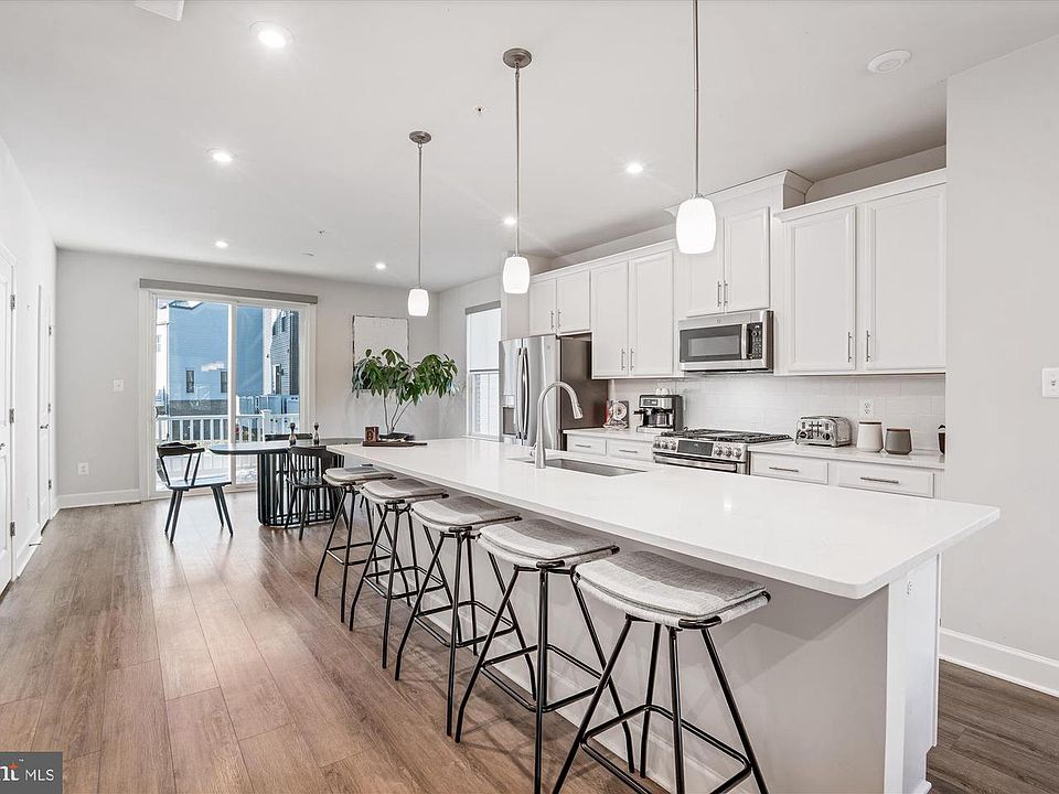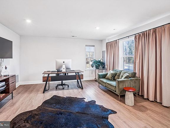 Located in Gateway West, this corner end-unit townhome offers enhanced privacy, additional windows, and broader sightlines than interior units—resulting in noticeably stronger natural light throughout. The home includes a private balcony and an enclosed two-car garage, along with a convenient location near Riverdale Park Station (Whole Foods, Starbucks, dining), Trader Joe’s, Target, and the University of Maryland. Hyattsville Crossing Metro (Green + Yellow Lines) is approximately a 6-minute walk. The entry level provides a versatile flex space ideal for a home office, fitness area, media room, or guest use. The main level features an open-concept layout with a well-appointed kitchen, quality appliances, and a large center island with seating, opening directly to the dining area and living room for efficient everyday living and entertaining. The upper level includes a primary suite with en-suite bath and generous closet space, plus two additional bedrooms and a full hall bath. With smart storage and functional living across three levels, this home offers a strong combination of layout, light, and location.