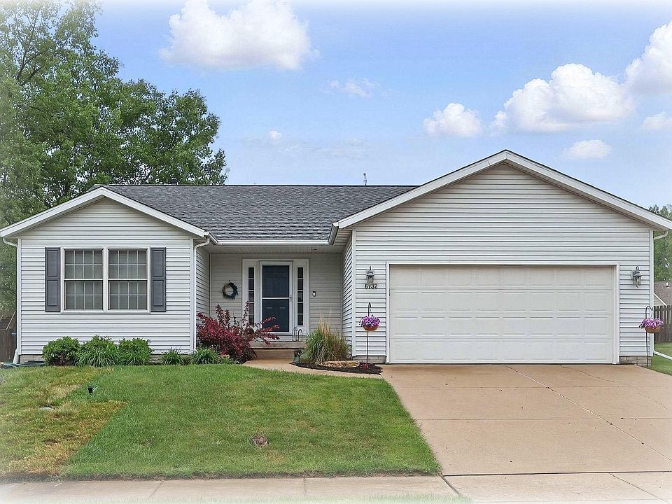 Welcome to this spacious and beautifully designed 4-bedroom, 3-bath ranch home featuring an inviting open-concept floor plan perfect for modern living. Vaulted ceilings and a cozy fireplace in the Great Room create a warm and welcoming atmosphere, while the adjoining Sun Room offers the perfect spot to relax and enjoy the natural light. The main level includes a generously sized primary bedroom with a private bath and large closet, plus convenient main floor laundry. The finished lower level boasts daylight windows, a large Family Room ideal for entertaining, two additional bedrooms - one with an egress window and one non-conforming - plus a full bath, offering flexibility for guests, office, or hobby space. Enjoy outdoor living in the fenced backyard with a deck and storage shed. An attached 2-car garage adds convenience and storage. This well-maintained home combines comfort, space, and functionality - don’t miss your chance to make it yours!