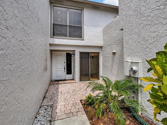 Nestled in the much desired Canary Palm community, this 3/3 townhome features a welcoming front patio and 1-car garage. Inside, the bright living area has floor-to-ceiling windows and a cozy fireplace while the spacious kitchen boasts a large island, and passthrough to the dining area. Primary ensuite bedroom is located on the 2nd floor and offers an oversized closet, and sliders to a small balcony. The second en-suite bedroom is located on the main floor with sliders to a screened-in patio overlooking green space. A loft with skylights provides additional space for a reading nook or office. Brand new carpet installed 5/25. Add'l features include central vac, washer/dryer & ample storage. No Pets. Amenities: community pool, tennis and basketball. Close to shopping, dining and so much more