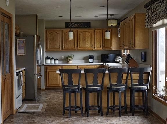 There's a feeling of peace & wholeness when you are in this home on high land w a lovely view from windows or lg. wrap deck. Beautiful w its 3-bed, 3-bath, his/her 2-car x-deep garage, add open floor plan, pro-decor, built-in deluxe speaker system, outdoor deck sound & lighting, new flooring & paint, custom blinds/drapes, giant oak trees + meticulous landscape -it's fabulous! Detached shop with 3 lg overhead doors. 4.91 acres. You have to see it! I love this home- you will too. All electric $300/mo (2/D/JP)