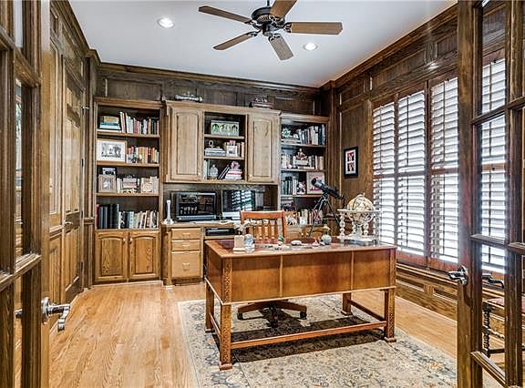 4 bedrooms, 3 full bathrooms, 1 half bathroom, formals, den, study, game room, wet bar, downstairs master, pool, spa. On an over-sized 75 x 130 lot in Preston Hollow. This home affords all amenities with a down stairs master. Paneled study, hardwoods downstairs, luxurious master bathroom with travertine and views of landscaped yard with pool and spa and outdoor living area.