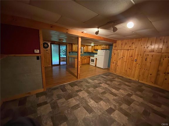 Priced below assessment, this cute and cozy home is a real bargain. Owners have updated the furnace and roof in the last 10 years and the septic and hot water heater in the last 5 years. Previously used as a rental unit, this property is ready for it's next owner. Living space is in the basement, with an open concept, making it economical to heat (approx. $600-$800/year). There are two bedrooms, one bath and great room/kitchen area. Rear of home has patio area overlooking back yard for those quiet summer evenings. Public water will be available next year. If you need more space, you could always build a second level onto existing structure.