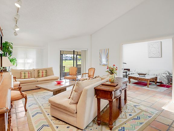 This 2 -bedroom villa nestled within an all-ages gated community of the Fountains Country Club, is ready for your finishing touches. 2 bedrooms with full baths, and an enclosed den with an attached half bath. Very easy to make it a 3rd bedroom. Light filled master bedroom has an attached en-suite with jacuzzi tub/ separate shower as well as 2 large closets. Renovated kitchen, updated laundry, AC replaced within last 5 years., roof is 4 years old Relax at the year round community pool mere steps away, and if desired, ,join the country club for golf, tennis,pickelball,bocci,cards, dinners and more.. HOA maintains the roof, provides basic cable and internet. Centrally located from FLA Turnpike ,I-95. Great for first time homebuyers.