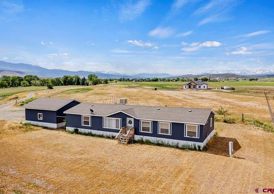 Amazing opportunity to live on the beautiful south side of Montrose Colorado 4 amazing irrigated acres with spectacular mountain views. Spacious manufactured home is purged and move in ready. 3 Bedrooms and office make for ample room Sliding glass doors off the dining area open to the South giving you a perfect view of the open field and the San Juan Mountains. Irrigation water will keep the pasture area lush and green. The field south of the home has previously been planted in alfalfa. * With no covenants to restrict your freedom you have the ability to make this the perfect gentlemen's ranch or hobby farm. Lets the kids have all the 4-H animals they want on this property! Roomy 2 car detached 24 X 24 garage allows for parking and storage. Short drive to Ridgway Reservoir, Ridgway and Ouray. Enjoy evenings listening to the crickets and counting stars.
