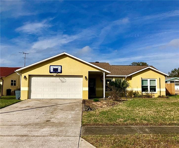 Location. Location. Location and NO HOA! This home is a functioning THREE BEDROOM/TWO BATHROOM POOL HOME. Very convenient to Historic Downtown New Port Richey, the NPR Recreation Center, US 19 & SR 54. NEW ENERGY STAR HURRICANE RATED WINDOWS installed in 2017. NEW 3 TON RHEEM AC & AIR HANDLER installed in 2017. The nice size front porch features natural SLATE TILE. As you enter the home you'll notice the VAULTED CEILINGS and the bright, OPEN floor plan. The split plan features a great room, formal dining area, and an eat-in kitchen in the center of the home, perfect for family gatherings and entertainment. The kitchen features GRANITE TILE COUNTER TOPS and STAINLESS STEEL APPLIANCES. Enjoy the peaceful and relaxing days on your TILED PATIO in the LARGE FENCED BACK YARD, overlooking the beautiful IN GROUND POOL. Back yard also features a fenced dog pen. For peace of mind, a five foot child safety fence around the pool was installed. Reclaimed water for Sprinkler System. SECURITY CAMERAS throughout property (7 in all) ARE CONVEYING. The third bedroom has no closet and has been converted from a portion of the garage. There is still plenty of garage space for the lawn mower, tools, bikes etc. Owner is willing to convert back to garage if wanted. Schedule your showing today because this home will not be available for long!
