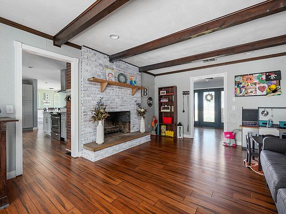 - Breakfast Bar, Beamed Ceilings, Vaulted Ceiling(s), Walk-In Closet(s), Stone Counters, Crown Molding, Entrance Foyer, Open Floorplan, Tub/Shower Combination, Main Level Bedroom Suite, Formal Dining Room
