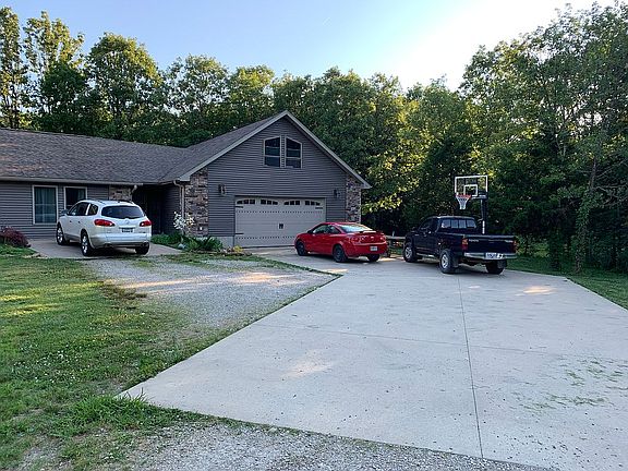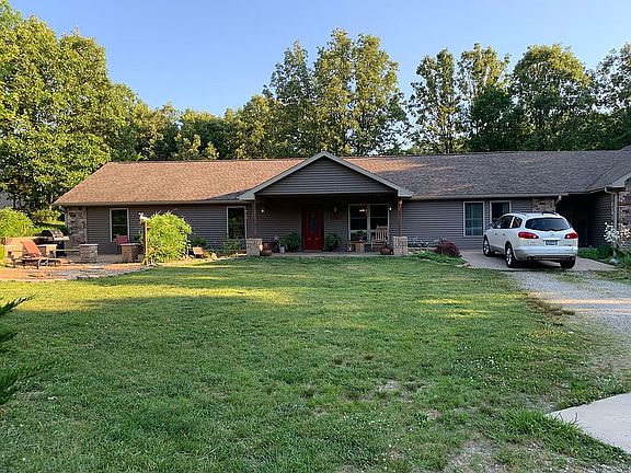 Three bedrooms, possibly four, earth berm home. Stone and vinyl siding exterior. Open floor plan, two-car garage. 3.70 acres m/l offers a mix of woods & public land with a garden spot and shared pond. Large rustic den with working gas fireplace and high wooden vaulted ceiling, perfect for that man cave! 24 foot round, 52 inches deep above ground pool with an attached 16' x 12' pool deck in the backyard. 20' x 18' concrete patio with autumn blend stone blocks and wooden benches: Custom Knotty Alder kitchen cabinets, spacious island, soft closed doors, and drawers.