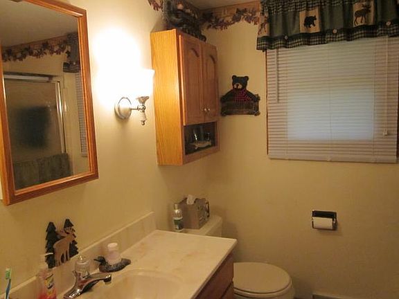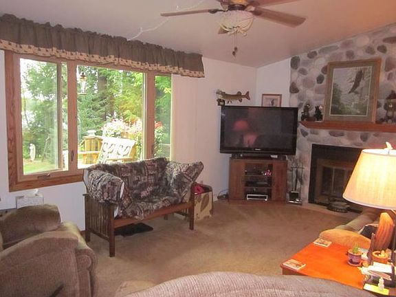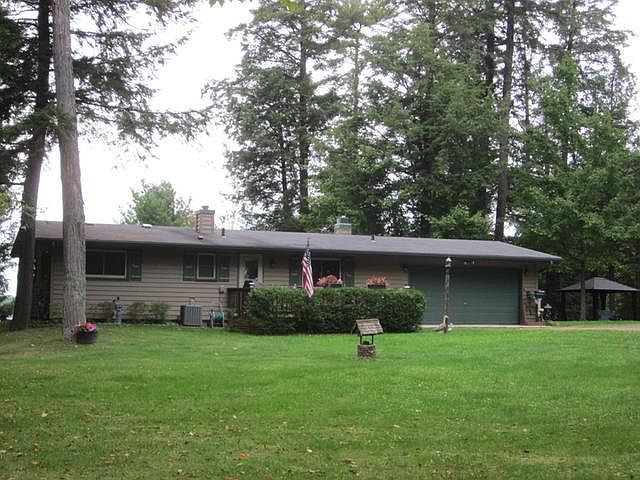 Gentle slope to Sugar Camp lake with 200' of lake frontage. Home offers 2 bedrooms, 2 bath, full basement and a 2 car attached garage. Large 10' x 18' wood storage shed, fire ring and outside screen room. Direct access to snowmobile trail over frozen Sugar Camp Lake.