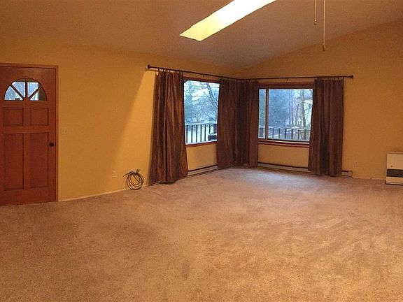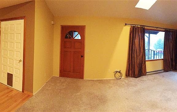 You will love this home with vaulted ceilings and skylights. This attached home is two bedrooms and two baths. The second bedroom has a dividing wall that could work really well for two beds or a private office area. Log siding adds to the charm along with front deck that wraps around to the side. Park you car in a heated garage with shelves for storage. Roses and other blooming plants around the home.