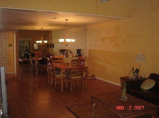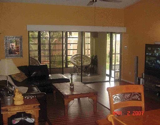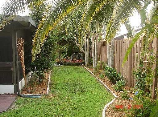 Fantastic private fenced in corner fee-simple villa in Palm-Aire.Refinished kitchen cabinets,pantry,newer stainless steel appliances w/radiant range.Bright eat in kitchen overlooking quaint private front patio. Two more spacious screened/roofed patios in back (9 X 13 & 9 X 22) are surrounded by serenee andscaping, HotTub/Jacuzzi & waterfall.Brand new extra large shower in master bath.Beautiful laminate flooring, Culligan water purification system thruout, vaulted ceilings. New central a/c. Shed. No HOA !