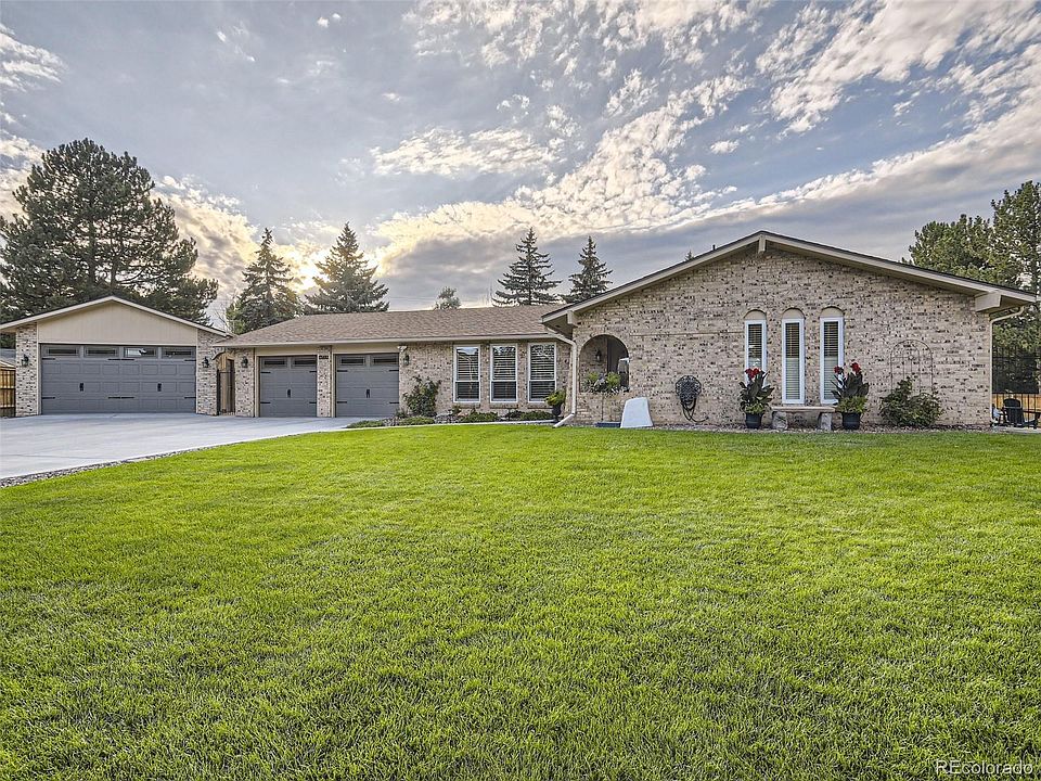 Come see this meticulously maintained and updated rare ranch home in Columbine Knolls. This gorgeous home is nestled back at the end of a cul de sac. The large pie shaped lot is over a half an acre affording great privacy and gorgeous outdoor space. The backyard boasts a covered patio with ceiling fans and lights and two additional pergola spaces, and a putting green! And for those of you with lots of toys, this rare home has 2 garages; one 2 car attached garage and one 2 car detached garage with an additional garage door in back to access the backyard. The additional garage also has an additional electrical sub panel. The kitchen is updated with beautiful cabinetry, counters and a large picture window above the sink to enjoy the backyard view. The brand new Samsung refrigerator with computer screen is also included. The bathrooms have all been updated, including a spacious shower in the primary bath and a steam shower in the basement. Anderson windows and doors throughout the home were installed in 2019. Plantation shutters are all throughout the home. New roof and gutters were installed Sept 2023. Furnace/AC and water heater were also all replaced in 2020. Closet Factory closets throughout the main floor and central vac included. You will also enjoy this lovely neighborhood with mature landscaping and a park at the end of the street. Chatfield State park, downtown Littleton, Aspen Grove shopping, trails and great schools are all just minutes away.
