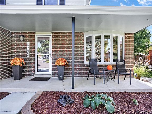 The seller has gone the extra mile getting this home ready for sale! You will appreciate the Brand New Roof, the Just completed New Exterior Paint, the New Deck off the Primary Bedroom, the New Gutters, the New Garage Door, the brand New Kitchen Refrigerator, the New Concrete Driveway and the Gorgeous New Landscaped Backyard! This meticulous Two-Story Home is ready for move-in. The quiet, tucked away location is close to all of your life-needs, groceries, banking, restaurants, gas stations, schools, hiking trails and easy highway access to Denver, Boulder, and the mountains. You will love the beautiful hardwood floors throughout the main floor! The floorplan is open and bright with an easy flow of movement throughout the home. Kitchen upgrades include all stainless steel appliances, gas range, glass front cabinets, eat at counter and great room connection to the family room. The family room is bright and sunny with a brick fireplace and French doors to a cozy Sunroom. Upstairs is 4 bedrooms and 2 bathrooms. The Primary Suite will be your Oasis Retreat with a fireplace, private bathroom, walk-in closet, high ceiling with wood beams, and a private deck! Outside you will love the mature trees, the lush lawn and the professionally added stone patio with steps to a huge sunken flagstone patio, all within a big privately fenced yard! The street appeal of this home is lovely with a fresh updated paint palette, an extended Covered Porch, nicely landscaped flower beds and manicured lawn. This West Arvada home is sure to be your favorite !! Showings start Saturday, 10/7 9:00 am