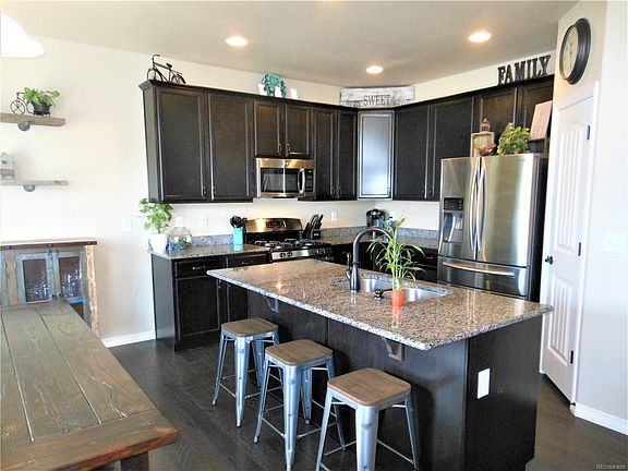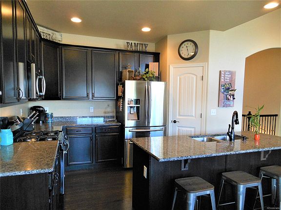 PRICED TO SELL!! Stunning, like-new home offering over 3,000 sq ft! This charming west facing ranch resides on one of the largest corner lots within the quite Carriage Hills community. Vaulted ceilings, slab granite surfaces, plantation shutters, and dark hardwood flooring adorn the main level. Substantial kitchen boasts an oversized island and is open to the dining and living areas. Lovely main floor master includes a private 5-piece bath, fireplace, and is joined by 2 additional bedrooms on the main. 2 more conforming bedrooms can be found in the finished basement which also houses a 3rd full bath and expansive space for recreation and media. Enjoy backyard pool parties with a custom made heated pool and professional landscaping. Huge yard for lounging and games! This commuter-friendly development is I-25 accessible and just moments from a nearby rec center and pool, gymnastics center, local schools, and the main strip shops and restaurants!