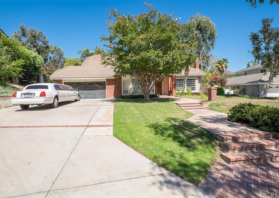 Situated on over half an acre flat lot, sits this rare home, 1 of only 9 semi-custom homes known as Hidden Crest. Located on a cul-de-sac this home is surrounded with mature trees, a swimming pool and spa, lots of grass, dog run and a bbq island. The extra long driveway leads to an oversized 2 car garage and a front porch with custom dual entry doors. The dramatic entry leads to a step-down living room with a brick fireplace and soaring ceilings. There is a downstairs 4th bedroom (or den) and bath on the main level. The newly remodeled kitchen has a rolling center island, two built in hutches, built in refrigerator, Bosch dishwasher and Wolf stove. A dining room with french doors goes out to the patio, perfect for entertaining. There are two additional rooms downstairs that can be used as an office, exercise room, or dog room. Upstairs the master bedroom has a sitting area, vaulted ceilings, a master bath with dual closets, a soaking tub, dual vanities, skylight and a custom tile shower. Two additional bedrooms and a full bath are also upstairs. The possibilities for this unique property are endless!