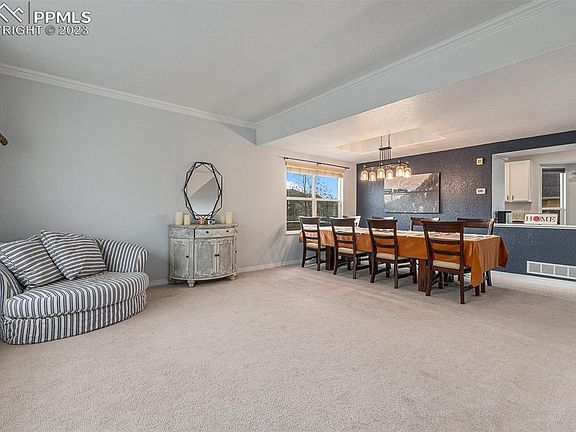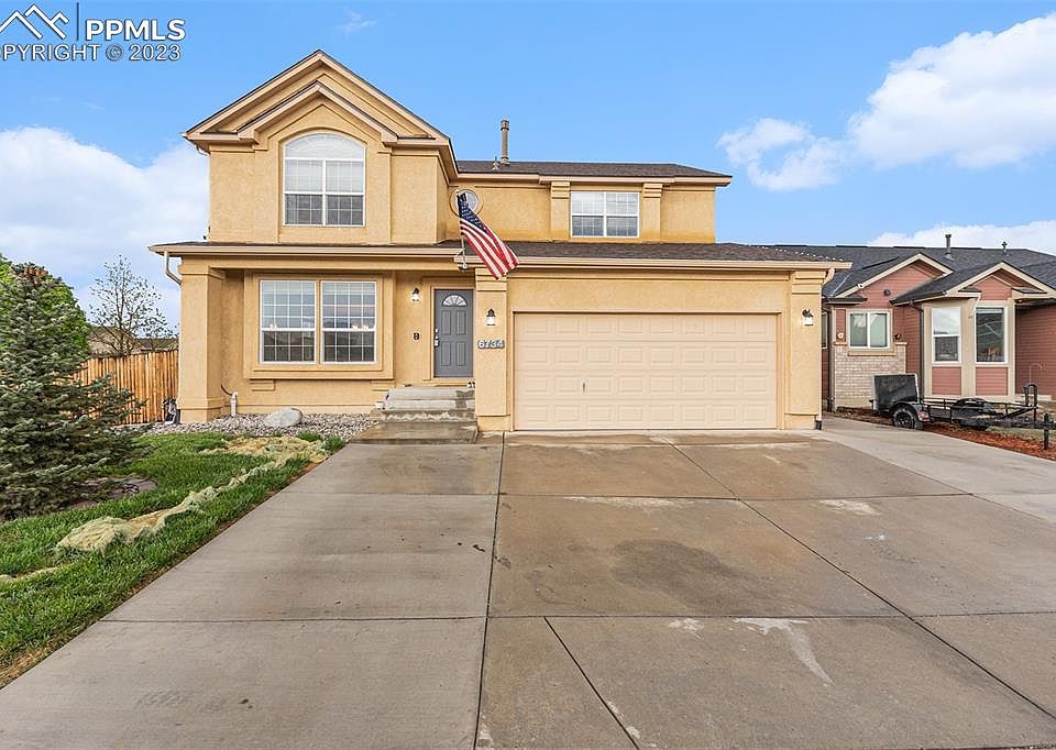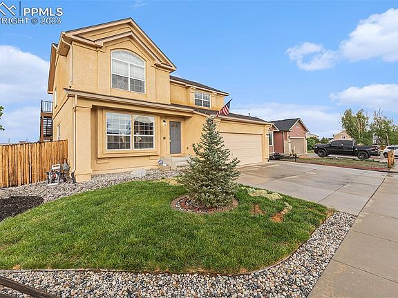 Welcome to your dream home in Fountain, CO! Step inside and discover a wealth of desirable features that will make you fall in love. As you enter the home, you'll be greeted by an open and inviting floor plan, showcasing an abundance of natural light and a warm, welcoming ambiance. The family room features a cozy gas fireplace, perfect for those chilly Colorado evenings, creating a focal point that exudes both comfort and elegance. The kitchen is a true highlight, boasting sleek stainless steel appliances and granite countertops which provide ample space for meal preparation and entertaining guests, while the adjacent dining area is ideal for gathering with loved ones. Retreat to the luxurious master suite upstairs, which offers a serene oasis to relax and unwind. With its spacious layout, plush carpeting, and an en-suite bathroom featuring modern fixtures and finishes, this private haven will become your personal sanctuary. Entertainment options abound in this home, with a wet bar conveniently located in the basement. The main level also opens up to a fully fenced backyard, offering both privacy and security. Enjoy spectacular firework displays, incredible sunrises and sunsets, and magnificent mountain views from the exterior, single-access 360-degree viewing deck addition. Conveniently located close to Peterson AFB, Ft Carson, shopping, and schools. Don't miss your chance to make this exceptional property your own. Schedule a showing today and start living the life you've always dreamed of!