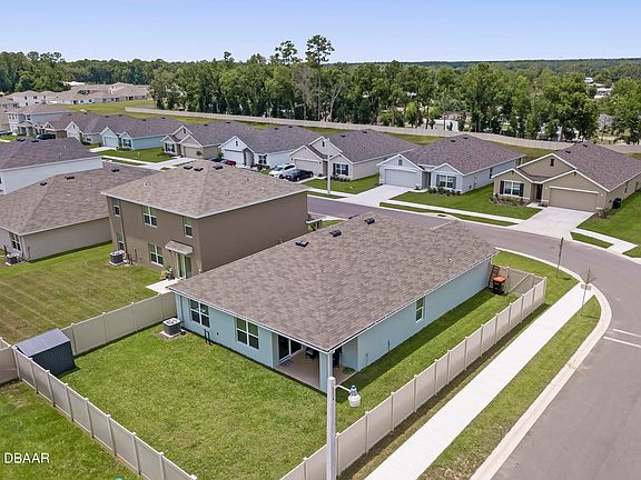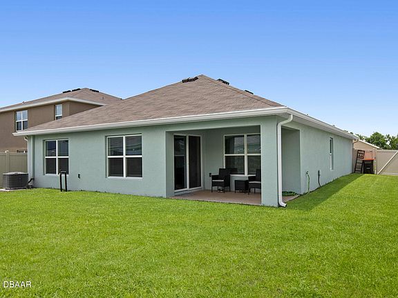 Welcome to this beautifully crafted 2023-built home in the highly sought-after Deer Path community on the southeast side of Ocala. Spanning 1,670 sq ft, this contemporary residence sits on an oversized corner lot, offering ample space and privacy with its large fenced-in yard. As you step inside, you'll be greeted by elegant tile flooring, abundant natural light streaming through large windows, and an inviting open concept floor plan. The gourmet kitchen is a chef's dream, featuring stone countertops, upgraded cabinetry, stainless steel appliances, and a spacious island that seamlessly flows into the living and dining areas. The expansive sliders open up to a covered porch, perfect for outdoor dining and relaxation, overlooking the vast backyard. The primary bedroom is generously sized, boasting a large walk-in closet and an ensuite bathroom equipped with dual sinks, stone countertops, and a stand-up shower. The split floor plan ensures privacy, with two additional well-sized guest bedrooms featuring deep closets and large windows, sharing a guest bathroom with a shower-tub combo and a deep vanity. Additional highlights include a convenient laundry room with extra storage and a two-car garage. This home is ideally located near some of Ocala's top-rated schools, popular restaurants, and shopping centers. It offers easy access to WEC, FAST, SR 40, and is just a short drive to the beach. Don't miss the opportunity to make this exceptional property your new home!
