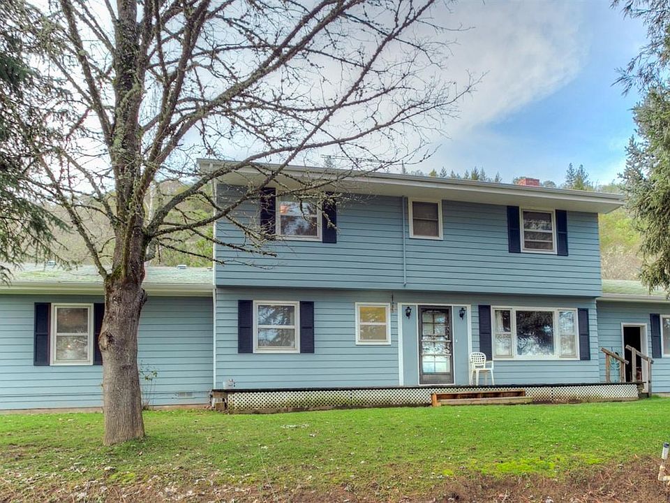 A remarkable property on over 67 acres! 2850 sq ft, 5 bedroom, 3.5 bath, 2 story home with hardwood floors, newer carpet, new propane furnace, attached garage and a downstairs ensuite bedroom/bath. Master suite upstairs with 3 additional bedrooms. End of the road privacy with views of the valley and Mt. McLoughlin. Large shop building, 3 sheds, small barn and fenced areas for animals. 2nd unit is a 756 sq ft mobile needing a little TLC but rented until recently. Convenient location to I-5 and Central Point School district. Two-family set-up potential, 60+ gpm well (per owner) and lots of room for animals, hiking, 4 wheeling and ? 2 separate tax lots with the possibility of splitting the property per JC Planning. (Buyer to complete their own due diligence) This size property is not available very often, don't miss it!