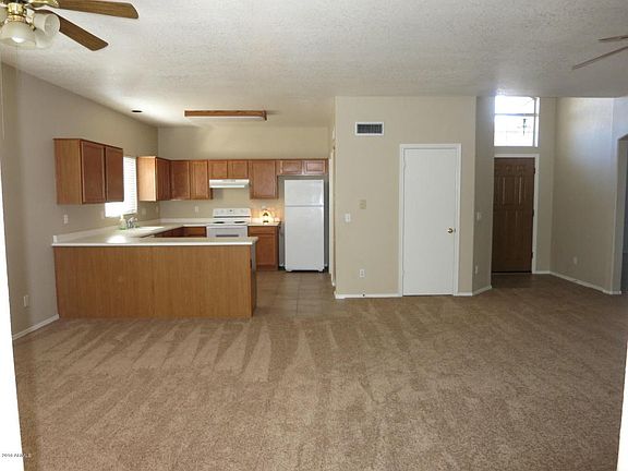 3 BR/2 BA Open Floor Plan with Split MasterTile entry into light, open floor plan. Warm, two-tone paint throughout. Ceiling fans in every room. Kitchen includes refrigerator, breakfast bar, microwave and pantry. Inside laundry and 2-car garage with plenty of storage. Master has large bathroom and walk-in closet. Front and back yard are finished with grass and flowering shrubs. Well kept neighborhood with easy access to freeways, shopping and Superstition recreation areas.