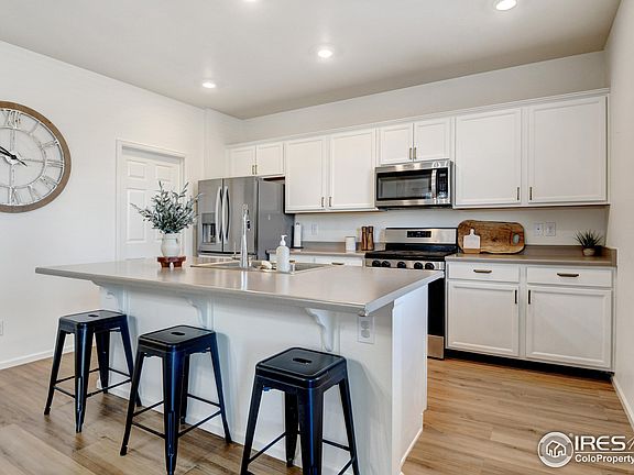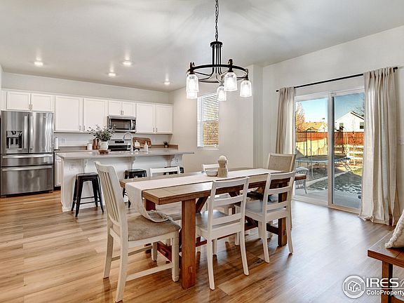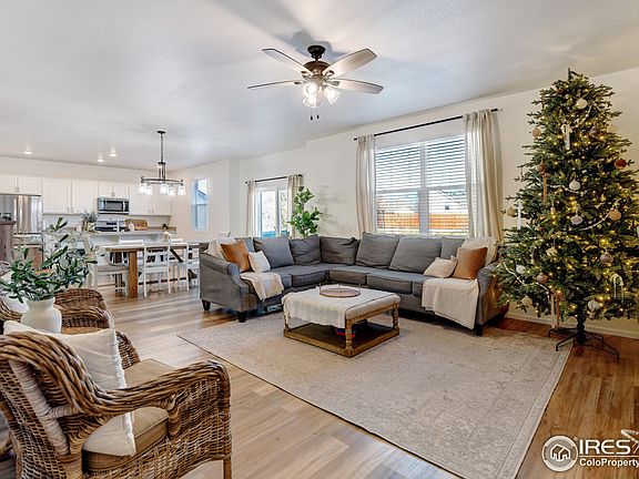 This extremely well maintained 2 story has been extensively updated. The light and bright main floor features a study, remodeled half bath, kitchen with newly painted white cabinets, pulls, a large island, updated lighting and eat in area. Enjoy cozy nights in your living room by your electric fireplace with no clean-up. Upstairs has a loft and laundry room which separates and provides privacy for the spacious primary bedroom from the 3 other secondary bedrooms. Backyard boasts an oversized patio, grass area, and fenced dog run. Home backs to HOA open space and privacy fence between neighbors for secluded outdoor living. Neighborhood walking trail the street over and close to downtown shopping, regional library and saddleback golf course. Small town living with the advantages of hopping on the highway in under 10 minutes with DIA, Denver, Ft. Collins and Boulder all under an hour away.