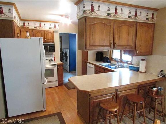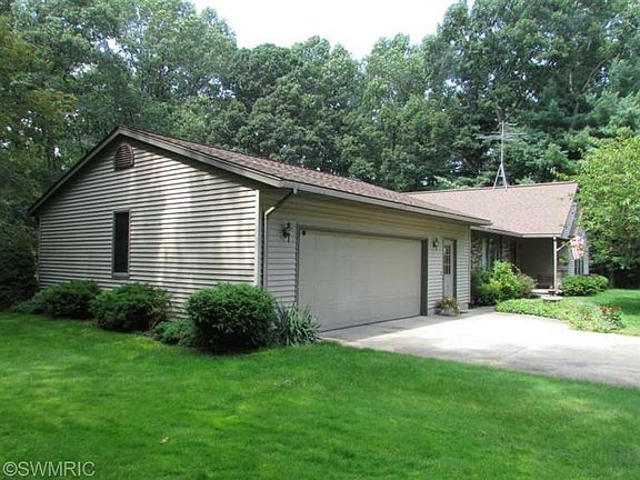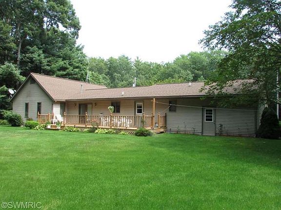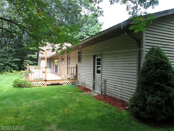 Quality built Fruitport ranch on wooded lot. An acre of land just outside the village with a secluded backyard setting. 3 bedrooms, 2 baths, main floor laundry, and a finished basement with lots of storage. Slider out to large deck, storage shed, underground sprinkling on a separate well. Central air and attached finished garage.