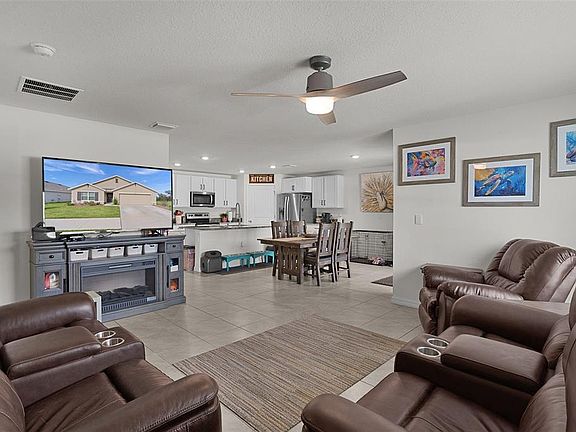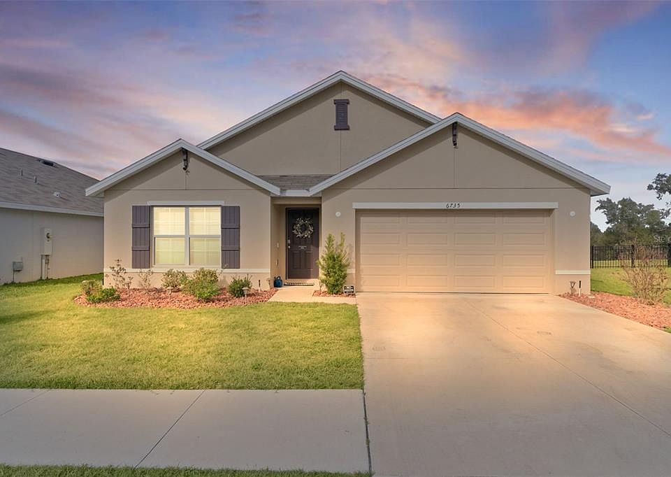Motivated Seller!! Check out this modern, move-in-ready home located in the highly sought-after Southeast Division of the Deer Path Community. Built in 2023, this 4-bedroom 2-bath Cali Model home has it all. As you approach this home, take note of the manicured lawn with rocked landscape. This home features a spacious open floor plan with tiled flooring in main living area. The kitchen features white cabinetry with granite counters, stainless appliances, and a large, functional kitchen island offering ample prep space and additional seating—perfect for everyday living and entertaining. The primary bedroom features a walk-in closet and an ensuite bath with dual sinks and a walk-in shower. Three additional bedrooms provide plenty of space for a growing family, visiting guests, or a home office. The laundry room features cabinets above the appliances for additional storage. Enjoy outdoor living with a covered lanai and extended paver patio with a fenced yard which backs up to a retention pond. Another great feature of this home is the smart home technology that operates the A/C, garage door, front door lock, lights and more! All controlled on a free app on your phone. The home surge protection system protects appliances and electronics from power surges and spikes