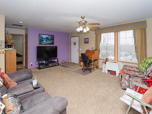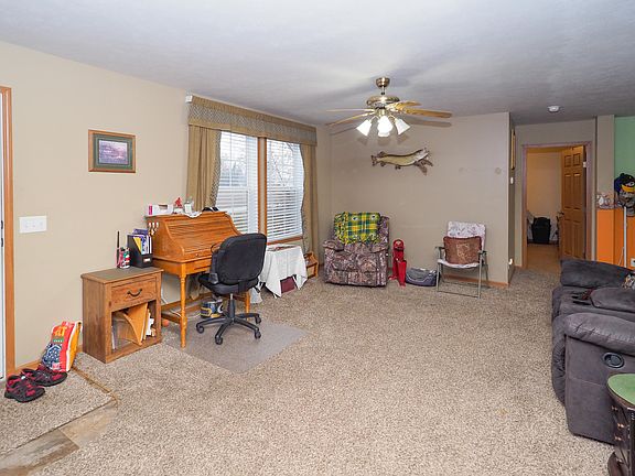 Charming 3 Br / 2 Bath home located on just under 13 wooded acres surrounded by corn fields. This homestead is a deer hunters paradise. Private pond attracts wildlife from surrounding area. House is open concept, simple and homey. Wood burning stove provides efficient heat source for those cold winter days, propane furnace is a great back up. Includes 12' x 18' Workshop and 15' x 20' one car garage. Home has a 12' x 32' deck on back for relaxing evenings watching wildlife. Includes wood bin 1/2 full to see you through this winter. If you are looking for a homestead to get away from hectic days this is it.