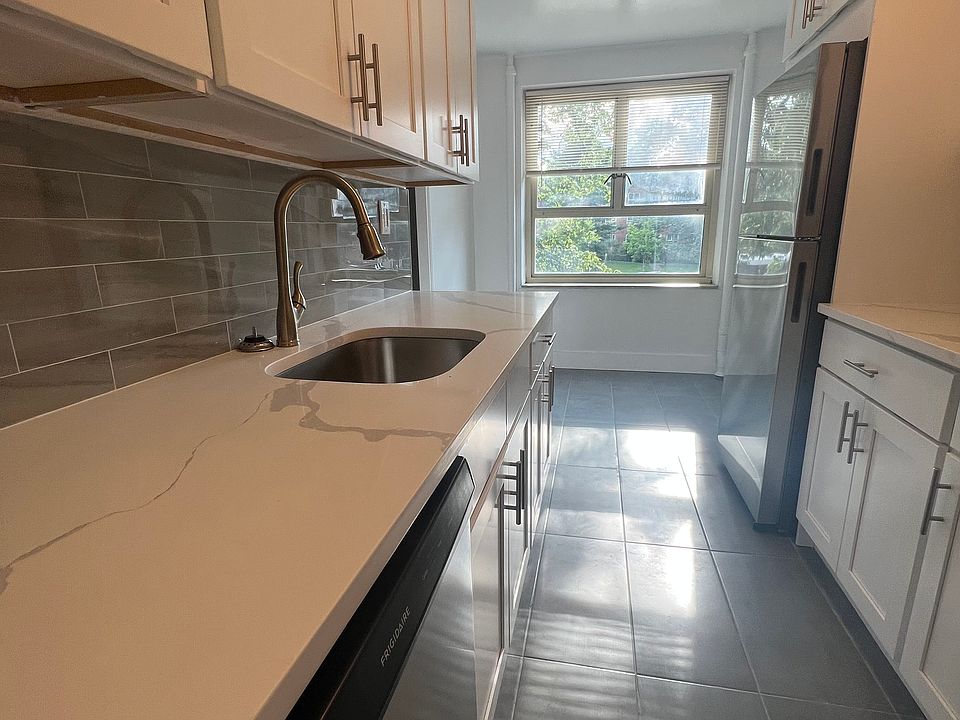 Spacious and renovated and below market price, 2 bedroom garden apartment in the heart of Fresh Meadows. Kitchen recently upgraded with new cabinets, fixtures, and stainless steel appliances. Bathroom also upgraded with new porcelain fixtures, medicine cabinet, floor and wall tiles. Renovated hardwood floors with high ceilings, no creaky floorboards or noise echo to and from neighbors. Well managed and maintained garden complex with excellent live in supers, porters, security staff, and maintenance team. QM5 Express bus located next to building. Good credit and income required for inquiry. Inquire within for full walk-through videos and in-person showing schedules. Water and heat included. Tenant responsible for Gas and Electricity (via Metergy Solutions) 1 year lease.