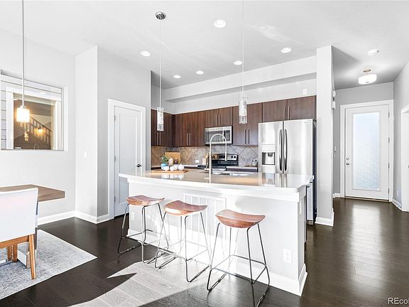 Experience life in a new light from this contemporary, David Weekly-designed home with windows galore, mountain views, soothing neutrals, fresh exterior paint, and tons of natural light. With a study and powder room off the main entrance, you’ll have all the work from home space of your dreams. And when it’s time to close the laptop and gather with family or friends, a great, open living space is just the place, with a huge kitchen island, eat-in area and a living room that has an amazing bank of huge windows. This connects seamlessly to the outdoors, with multiples spaces for dining, lounging and play: a covered patio with privacy fencing, a brick patio, and an easy-care turf lawn. Above it all on the second floor is a large master suite with a restful bathroom and walk-in closet, plus two additional bedrooms, views, and a full bath with contemporary finishes. The basement is smartly finished to provide a large living room with a media, workout, or office nook, plus a full bedroom and bathroom. Keep it all energy efficient with $20K worth of paid-off solar panels on a quiet cul de sac, close to Home Plate Park, community gardens, Bruz Beers and the local Montessori school in the heart of Midtown. Discover this friendly community just minutes from downtown Denver, with light rail access and four major highways to connect you to the best of the metro area.
