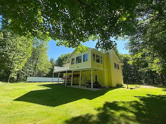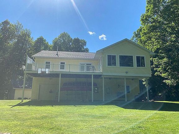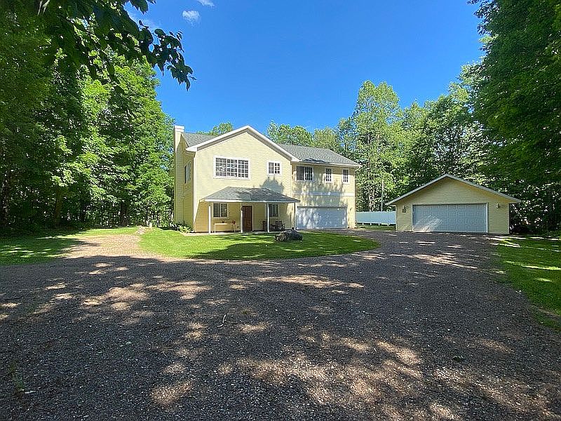 The house is 200 yards off of Dam Road, hidden in the forest. As you get close, you hit the garage door opener and pull into your heated or air-conditioned lower level. Lower Level (ground level…not underground) The lower level is wide open. 9’ ceiling and 40’ x 32’ clear span with no support posts as the home has floor truss’. The lower level includes: room for 2 cars, 2 snowmobiles or ATV’s, mud room, the bar area, the work out area, a 2-person hot tub which faces a big screen TV, The utility room, Full Bath/Laundry room, large L shaped desk area. Lots of storage space with 1 wall designed to hold canoes/kayaks/stand up paddleboards. 7 x 18’ oversized garage door. The entryway has beautiful stone tile with cedar paneling and a large wardrobe closet. You ascend the hand-crafted Walnut Staircase to the upper level. Out the handmade cherry front door is the front porch with the 2-person rocker seats. There is a small deck on the south side of the house which is plumbed for an outdoor shower. Lots of sun catches the south side of the house. Out the back door towards the river is the back porch which is covered by the 3-season porch above. Great place for a double swing. Lots of traffic through here out to the fire pit and river. Upper Level You first notice the open floor plan and high ceilings of the upper level. Beautiful hickory flooring. You are surrounded by windows, feels like you are in a tree house in the forest. The L shaped kitchen has custom pine cabinetry, pantry closet and all appliances. There is a 2-person desk area with granite top for you to check your laptops, it overlooks the front yard. The 6-place high-top dining room table has log type chairs that match the custom wood work in the room. The windows have wide boards custom finished all with cat walks. The chandelier of canoes overhangs the table. Amazing views and every season is different. Looking out the front windows - Deer and Turkeys are common. Fox, Coyote, Bear, Bobcats, Owls, Eagles, Swans, Geese, Ducks, Grouse, pheasants are in the area. The master bedroom comes with a $3k Serta king sized bed. Custom made pine dresser matches the bed side shelf. There is a door out to the deck. 1 very large closet with wall organizer. Master has its own ½ bath which is a walk through to the shared shower room. Same stone tile throughout master bath, shared bath and common bathrooms. The bunk room has 3 twin beds and 1 full bed. Large walk in closet. 2nd Bedroom has large walk in closet converted to sewing room. The 3-season porch is adjoined to the living room to double the room capacity. The 12 x 20 3-season porch has authentic Pergo walnut flooring. The doors and windows are wrapped in rough sawn dark cedar. The room is surrounded in windows. (good deer stand). The view is over the main fire pit to the river where you can hear the geese squabbling amongst themselves down on the river. Off the 3 season porch is the 12 x 30 deck with maintenance free decking and railing. This is the grill master’s area. It is also a great place to lay out in the sun. Even early or late season the elevated private deck sucks in the sunshine. The deck is 11’ off of the ground. Detached Garage 24 x 24 detached garage with 7 x 16 door and man door and electric panel. The garage has storage truss’ so the upper level is open with tons of storage space 20’ full length work bench Shelving, storage 16’ Lund Rebel Fishing Boat with 40hp Merc and duck blind. John Deere riding lawn mower Ski Doo MxZ TNT Snowmobile