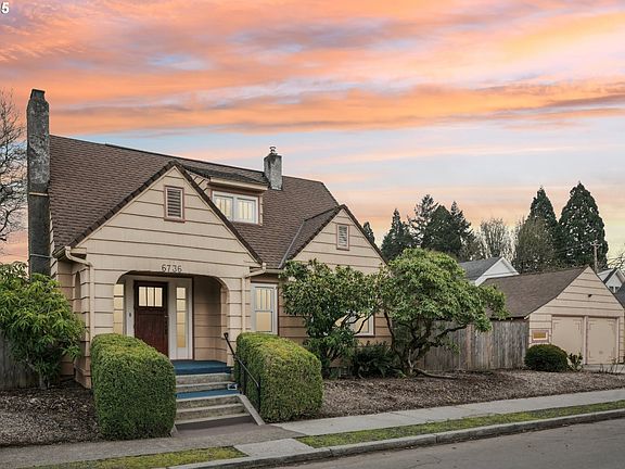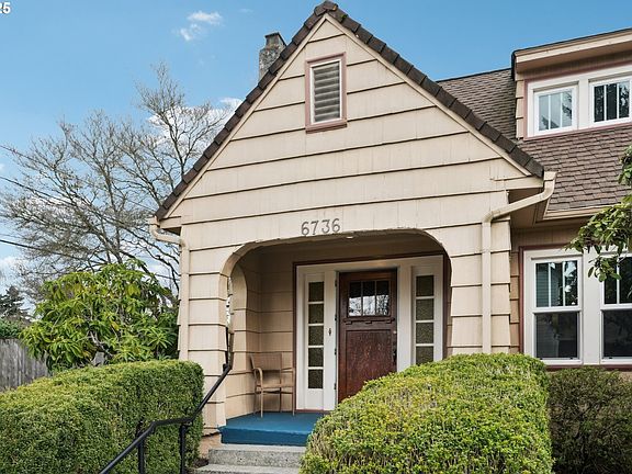 Beautifully restored 1925 English Tudor just a block from the University of Portland. This home blends timeless character & modern comfort, featuring elegant millwork, craftsman-style molding & vintage glass doorknobs. A row of English Boxwoods frames the front steps, welcoming you home. The spacious living room with over 8-foot ceilings, is anchored by a wood-burning fireplace & original 1925 sconces. Custom plastered ceilings in the living & dining rooms add architectural charm. Open concept living & dining areas offer seamless flow, drawing in the natural beauty of the outdoors with views of mature landscaping, including vibrant rhododendrons, stunning pink dogwood tree & lush laurel hedge for privacy. Main level also features hardwood floors beneath luxury vinyl, a primary bedroom with generous closet space & a spacious kitchen with a built-in hutch, sunny breakfast nook, pantry, ample counter space & abundant drawer & cupboard storage. Upstairs, two charming bedrooms with built-ins are accompanied by a generous central landing illuminated by dormer windows, creating a bright & inviting space with a built-in desk & half bath. The lower level offers bonus living space, two additional bedrooms with egress windows, a full bathrm & laundry area. This level also provides flexibility to reconfigure the space into a suite or home office. Situated on a corner lot, this home boasts a rare two-car garage, covered back patio & two distinct outdoor spaces a shaded north yard provides a cool retreat, while the sun-drenched south yard is perfect for making your garden dreams come true, both fully fenced. Underlying lot line presents a potential development opportunity or the detached garage could be converted into an ADU (buyer to verify). Additional highlights include a high-efficiency gas furnace, air conditioning & a new sewer line (March 2024). Conveniently located near downtown Portland, St. Johns, Forest Park & Sauvie Island, with shops & restaurants just minutes away. [Home Energy Score = 2. HES Report at https://rpt.greenbuildingregistry.com/hes/OR10219968]