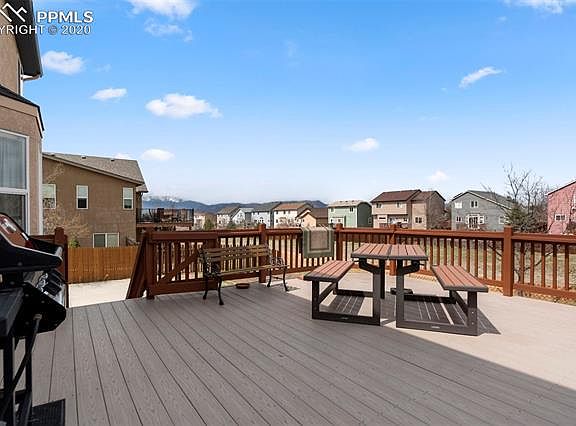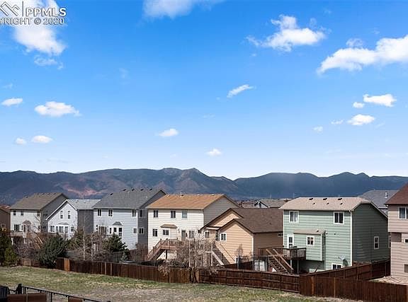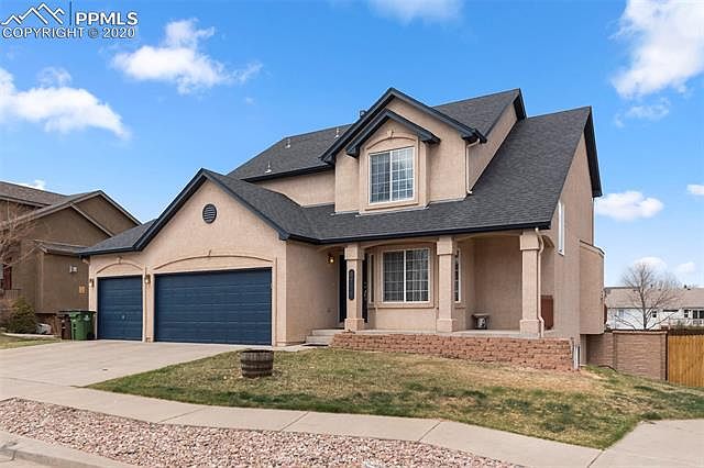 Great corner lot in Wagon Trails that backs to the trail system. This 2 story stucco home has over 3000 square feet of living space. The huge deck off the back of the home has a fresh coat of paint and a view of Pikes Peak. Community pool in Wagon Trails for those long summer days and cool summer nights next to the barbecue! Lots of entertainment space and an extremely large master suite on this one. Very well cared for stucco two-story with a three-car garage and space for the RV. The kitchen is fully updated with glass surfaces and appliances. The main level has space for formal dining or an office. Living room walks out to the outdoor space which has its own basketball court. Updated carpets and a gas fireplace make this main level open and friendly. The upper-level master is extremely large and could accommodate an office or large sitting space. This lot is almost a quarter of an acre and allows you to walk right out to the trails. Close to the Powers corridor and 15 minutes from I25 allow for an easy start to any commute.