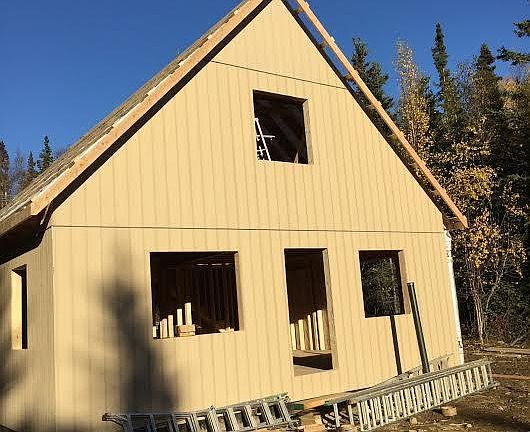 New chalet style home with one bedroom on main floor. Sheetrock stage now. This place is really coming along. Better grab it before someone else does