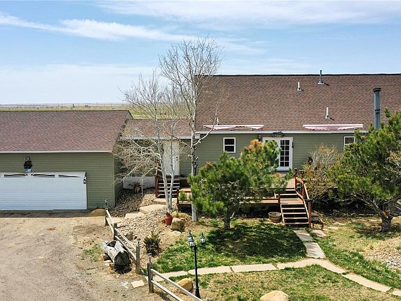 ASK ME ABOUT A 3/2/1 BUY DOWN ON INTEREST CONDITIONS APPLY. PRIVACY, PEACE, AND QUIET WITHIN MINS OF MODERN CONVENIENCES, 15 MINS TO GROCERY, FUEL, HARDWARE STORES,CAPE CODE HOME ON A FULL WALKOUT BASEMENT SITS ON 36+ ACRES ZONED A1 WITH ACTIVE FARM GROUND ON ALL 4 SIDES. THE PROPERTY INCLUDES 2 SEASONAL PONDS FREQUENTED BY A VARIETY OF WILDLIFE DEER, ANTELOPE, TURKEYS, PHEASANT, DOVES,BALD EAGLES. PROPERTY IS FULLY FENCED AND CROSS FENCED WITH 4 OUTBUILDINGS INCLUDING A 4 STALL BARN WITH HAY STORAGE AREA ABOVE, 3 OUTDOOR HYDRANTS AND A HEATED AUTOMATIC WATERER, LANDSCAPING INCLUDES LARGE LAWN AREA, FRONT, REAR, WITH MATURE ASPENS, COTTONWOODS A ND EVERGREENS TERRACED TO THE BASEMENT. THIS 3500+ SF CAPE COD HOME WITH 2 LEVELS,5+ BEDROOMS ,4 BATHS NEAR 200 SF MUDROOM CONNECTING A LARGE 4 CAR GARAGE. 2 FANTASTIC OUTDOOR LIVING AREAS, WITH COMPOSITE DECKING. FRONT IS A 280 SF COVERED DECK LEADING TO A LARGE 6 PERSON HOT TUB. THIS SOUTHWEST-FACING DECK AREA MAKES FOR A FANTASTIC WAY TO COMPLETE A DAY WITH OUTSTANDING EASTERN COLORADO SUNSET VIEWS. REAR IS A 590 SF TIERED DECK BUILT-IN SEATING AND 2 12' AWNINGS A GREAT GRILLING AND ENTERTAINING AREA. THE INTERIOR PORTION OF THE MAIN LEVEL INCLUDES THE KITCHEN, DINING, FAMILY ROOM, MAIN BATH, MASTER BEDROOM & BATH, A SECOND BEDROOM/OR DEN. 2ND LEVEL, INCLUDES 2 LIVING AREAS AND A 3/4 BATH, 2 DORMERS, BUILT-IN CABINETS, ADDITIONAL STORAGE. THIS AREA COULD BE 2 BEDS & BATH. BASEMENT 2 BEDS, A LARGE 3/4 BATH A LARGE 470 SF GREAT ROOM WITH 9' & 10' CEILINGS. THIS ROOM HAS THE RUSTIC FEEL OF COLORADO AT ITS BEST WITH A FLOOR-TO-CEILING RIVER ROCK FIREPLACE WITH A WOOD STOVE. LOG SIDING ACCENT AND WOOD CEILINGS COMPLETE THIS CABIN-LIKE INTERIOR. NEW PAINT THROUGHOUT IN ADDITION TO ALL THE ATTRACTIVE FEATURES LISTED ABOVE THE HOME ELECTRIC SOURCE HAS BEEN UPGRADED WITH A WIND TURBINE. THE TURBINE IS CURRENTLY WIRED INTO THE GRID FOR DIRECT SAVINGS ON UTILITY BILLS BUT COULD BE OFF-GRID IF SO DESIRED.