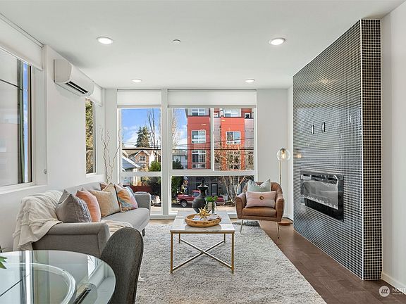 Mint condition Ballard live/work 1340sqft spacious 2020 Green built townhouse, w/no hoa. Rooftop deck with Sound & territorial views, This home features a Top floor master suite complete w/ ensuite 3/4 bath, upgraded hardwood floors & A/C throughout. 2nd floor features open kitchen and living w/ floor to ceiling windows, electric fireplace, quartz counters, and stainless Beko appliance. Beautiful 14ft high ceilings, the main level has a 400sqft streetside mixed use of flex space. This can be used as a office, bedroom, studio use, living space or commercial rental space. Photos show it as 2nd bed/studio Apt. No HOA, CCR or SCC. Airbnb rental options ok. Walk Score of 89, close to coffee, grocery, breweries, dining & Rapid D Line to downtown