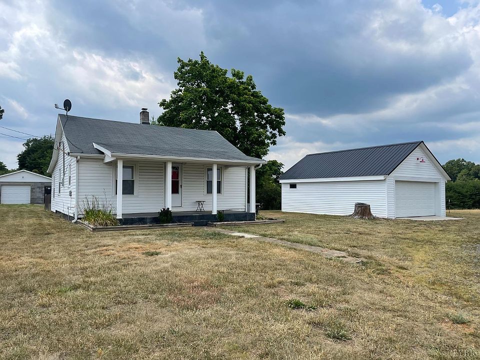 Affordable 2 bedroom 1 bath with shop and garage! Situated on 1.34 acres just 30 minutes from Lynchburg or Danville this home is a great buy. Vinyl siding on both home and detached garage, large kitchen, replacement windows, main level laundry room, newer carpet, walk-in closet in primary bedroom and other extras. The detached garage at 28x18 is great for the car enthusiast with vinyl siding and metal roof, electric and recessed lighting. Large shop behind home is 48x26 and has tons of room for any project. Also has electric and does have a non-functional bathroom in place. Enjoy the sunset in the evenings overlooking a nice farm off the front porch!