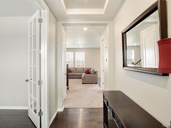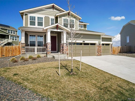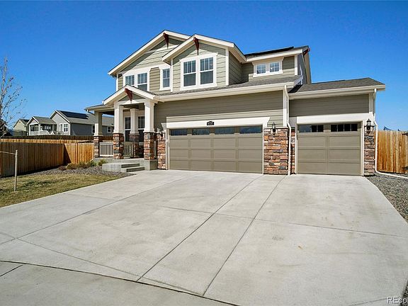 Gorgeous 2-story home in the quiet Amber Creek neighborhood. Situated on a large cul-de-sac lot with a nearby park and winding trails, this home draws you in with a welcoming covered front porch and beautiful curb appeal. Gleaming hardwood floors, abundant natural light, high ceilings and an open floor plan greet you as you enter. A private study with french doors provides an ideal location for work or reading. Living room features a gas fireplace and flows to the dining room/w access to the backyard via a sliding door. Fantastic kitchen features beautiful granite countertops, stainless steel appliances, a gas stove, large center island and pantry. The serene master bedroom boasts tray ceilings, and an en-suite 5 piece bathroom. 3 additional bedrooms, a full bathroom and convenient upstairs laundry complete the upper level. An unfinished basement provides additional future living space and storage. The large fully fenced backyard is a blank slate is that is ready to be turned into your personal outdoor oasis! Great location just a short distance to several local parks, Riverdale Golf Course and nearby shopping at The Grove. Close to amenities Driveway faces SW - Snow melts easily off driveway Backyard faces NE - Shady Summer nights