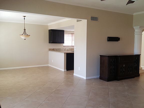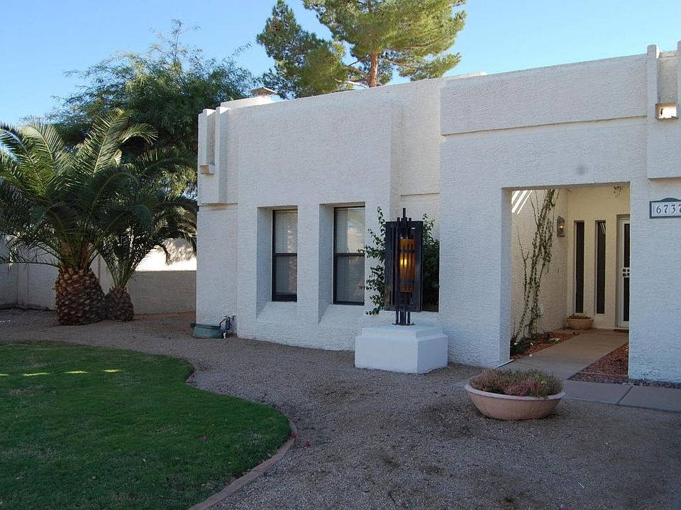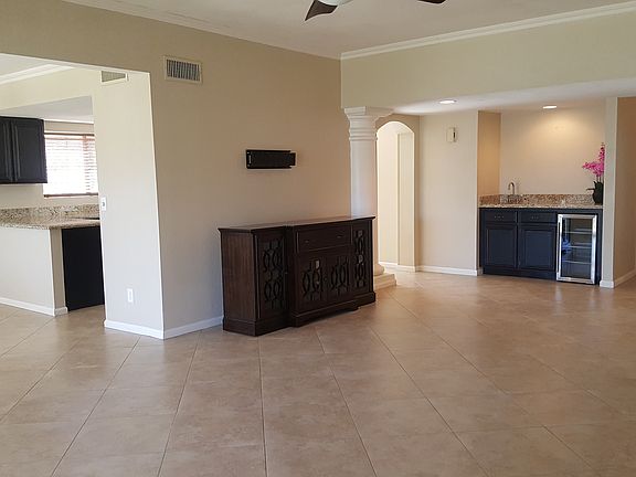 Clean lines and palm trees make for luxurious curb appeal at this Scottsdale home, just minutes from The Promenade shopping. Enjoy a kitchen with stainless steel appliances, granite countertops and black cabinets. The Great room is purposed with a wet bar and tile flooring. Bay windows and a sliding glass door illuminate the Master suite, which leads to the back patio. The en suite bathroom features a dual sink vanity and tile surround shower and garden tub. Large patio out back adorned with pillars and a large palm tree. All Opendoor homes come with a 30-day satisfaction guarantee. Terms and conditions apply. Open House: Mon-Sun, 6am-9pm