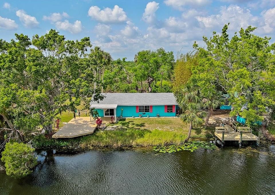 Amazing Investment Opportunity – Short-Term Income Producing Rental Property. This beautifully renovated, income-producing property is a rare gem that seamlessly blends Old Florida charm with serene riverfront living. Nestled at the end of a quiet road in the desirable Marineland area, this unique oasis sits on 2.5 oversized lots and boasts 192 feet of Braden River frontage, complete with two private docks, a charming fishing hut, and a peaceful backdrop provided by a 4-acre Manatee County-owned mitigation area - offering unmatched privacy and natural beauty. **The property has two fully independent living spaces, each with private entrances, individual HVAC systems, full kitchens, laundry rooms, and access to outdoor living areas. The main home features 2 bedrooms and 1 full bath, plus a spacious laundry room already plumbed for a potential second bathroom. Sliding glass doors open to a covered porch that leads to a private dock on the river. The attached guest suite offers a bright and open studio layout with a full kitchen, bathroom, and laundry room. Just outside, a screened-in lanai overlooks the lush backyard and river, creating a relaxing, private retreat for guests. An outdoor shower adds to the authentic Florida charm, making this property as inviting as it is functional. **Everything has been completely updated, including new flooring, modern kitchens, updated bathrooms, new plumbing, and fresh interior paint, making this home move-in or rental ready. Renderings and approved plans are available to add a third unit, transforming the property into a potential triplex and further increasing its income potential. ** Whether you're an investor seeking strong returns, a homeowner looking to offset your mortgage with rental income, or a multigenerational family needing separate living spaces, this property offers flexibility, privacy, and future development opportunities. Conveniently located just off SR 70, minutes from I-75, Nathan Benderson Park, Lakewood Ranch, and the UTC Mall. It's also a short drive to Bradenton's beautiful beaches, which makes it a prime location for year-round rental demand. ** Sold As-Is with right to inspect. Don’t miss your chance to own this rare waterfront treasure. ********New Deck/Dock Installed 2020, New A/C Unit in the Main House 2021, New A/C Unit in the Guest House 2023, New Roof 2022, Drainage Installed around the entire foundation 2021*******