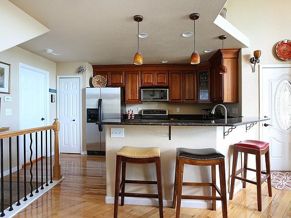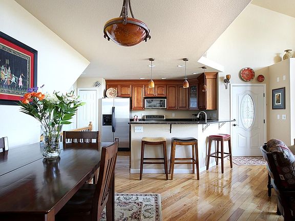 Beautiful town home at Thraemoor in the Park. French doors off the master to a spacious back deck offering views of the greenbelt. Southern exposure from the main living room provides tons of natural light. Vaulted ceilings. Hardwood floors on main level & carpet in all bedrooms & loft. Kitchen features spacious granite slab counter top with bar seating, abundant cabinetry, pendant lighting & pantry. Stainless steel appliances included. Double oven! Kitchen open to large living & dining room. There is a half bath off the kitchen with designer vanity & vessel sink. Living room features a cozy gas fireplace & built-ins. Master suite has expansive walk-in closet & five-piece bath. Open loft makes a great home office. Laundry location in lower level accommodates full-size washer & dryer (included). Lower level has 2 bedrooms with large closets, egressed windows & full bathroom. Roomy attached 2-car garage includes built-in cabinetry. Wired for in wall/ceiling speakers. Move-in ready!