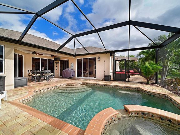 - Pool Features: Child Safety Fence, Heated, Salt Water, Outside Bath Access, Screen Enclosure, In Ground, Self Cleaning