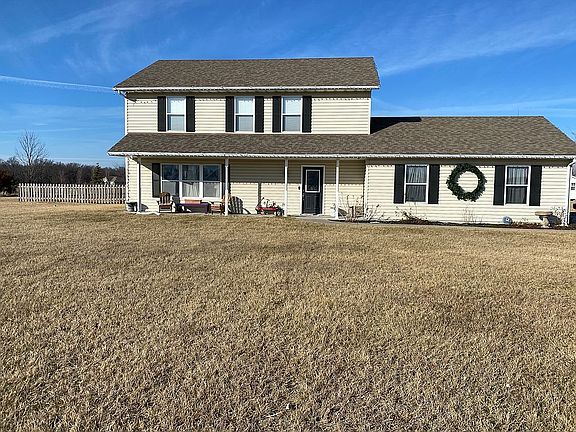 Single Family Home in Centralia, MO 65240. Modern, recently updated, two story, 3 bedroom, 2.5 bath ranch on large 3 acre lot(+/-). Located 2 miles north of Centralia in a quiet, spacious, child-friendly, very desirable country subdivision. Features an open floor plan, foyer, large eat-in kitchen & formal dining room. Spacious Master bedroom with private bath & large walk in closet. Storage space is not lacking in this house with walk in closets, extra cabinets, storage ready attic and the extra workspace in the attached oversized 2 car garage is a pleasant bonus. Updates include brand new floorings, paint, shutters & easy maintenance landscaping, along with new furnace & central air conditioning. All appliances are new and septic was pumped and serviced in 2020. Bonuses about this house include the quiet neighborhood, patio with pergola, fenced play area, fire pit, and tiny house/she shed/man cave! This one is a must see as it will go fast!