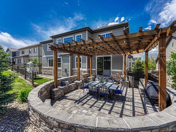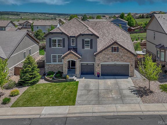 This is the one you've been waiting for! Discover this exceptional 5 bed, 5 bath home in the sought-after Cobblestone Ranch neighborhood, ideally located between Parker and Castle Rock! With over $125k in designer upgrades and 4,200 finished square feet, this home blends luxury, practicality, and style. Recently appraised at $865,000, it offers instant equity! The open concept ensures that each room flows seamlessly into the next. The chef’s kitchen features sleek new appliances, granite countertops, custom backsplash, upgraded lighting, a butler's pantry, double ovens, an oversized island, and a tech nook. Imagine gatherings in the grand living room with high ceilings, large windows, custom stonework, and built-ins. The main level also includes a private office, laundry room, formal dining room, and a 3-car garage with a custom workbench, cabinets, and two extra refrigerators. The outdoor space is equally impressive backing to a greenbelt, with a custom stone patio with built-in seating, and a pergola with lighting, perfect for relaxing and entertaining.