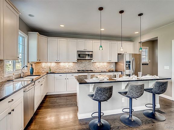 Rare location backing to Open Space, Waterfalls, Pond and Aurora Reservoir Views! Dramatic Floorplan features main floor study and den, great room with upgraded kitchen and balcony overlooking water. Giant master suite has two closets with private balcony overlooking water views, large second floor loft and laundry, two additional large bedrooms and bath. Lovely stained oak floors on main floor, stairs and second floor loft. Basement has builder-finished bedroom and bath, plus unfinished walkout basement providing 799 square feet of space for your design of the perfect media room with rough-in for wetbar, workout studio, or man-cave dream. Covered patio with backyard access, hot-tub and firepit stays! On-demand Rinnai water heater, Pellet stove, and two fireplaces with two-sided views (dining to kitchen, plus north patio to family room). Five outdoor living areas/decks and patios. Highly-ranked Cherry Creek School district includes new Altitude Elementary school. Non-motorized boats allowed (and rented at pavilion behind house), kayak and paddle board encouraged! Extensive retail, restaurant and largest King Soopers all within one mile. Aurora Southlands Mall and C-470 easy access. Enjoy Walking/Biking 8 miles of trails around Aurora reservoir, and lovely Southshore recreation center with pools, fitness room and much more included with HOA. Enjoy a 'Staycation' everyday at this truly amazing home on the water.