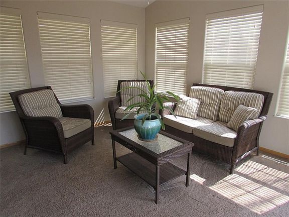 Bright open ranch condo located in popular Stoney Pointe Heights/Lakeview area bordered by walking/running paths. College community schools, close to I-30/380 and Westdale area. Main floor master suite with beautifully updated master bathroom featuring walk-in closet and professionally remodeled walk-in shower and double vanity. Front bedroom currently used as dining room but plenty of room for dining off kitchen. Open kitchen with breakfast bar, all appliances and huge pantry. Vaulted living room with gas fireplace. Relaxing sun room with sliders to large deck. Completely finished lower level includes recreation room with daylight windows, Jack and Jill bathroom, 2 large bedrooms one is currently set up as efficient home office/den. Including cabinets, book shelf and desk overlooking back yard. Quality built. Enjoy the convenience of the 2 car attached garage right off kitchen for easy entrance with groceries. Very peaceful and ready for new owners. Irrigation system, sound system and radon mitigation system. HSA 1 year home warranty.