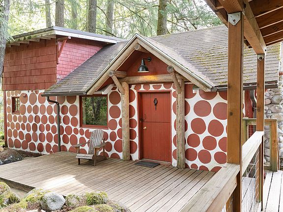 Welcome to the Little Yew cabin in the heart of the Mt Hood wilderness. Just an hour's drive from Portland, this riverfront property is the quintessential forest retreat. Surrounded by towering old growth forest with the rushing sound of the Sandy River, this singular property also houses Mt Hood's only known cordwood constructed cabin. It's no surprise that such a one of a kind property would attract the attention of Michael Pratt and Rita Larson in the late 1980s when they purchased and renovated the cabin and guest cottage. Pratt & Larson embellished surfaces with the whimsical custom tiles and artisanal features that have become a staple of Northwest design. A true original from the outside in with a floor to ceiling original stone fireplace, exposed beams, cedar clad walls and tall windows; take in the river and forest views from the new soaking tub. Featuring two separate sleeping areas as well as both private and common gathering space, entertaining is made easy. With furnishings and decor included in the sale, this is your opportunity to enjoy a turn key set up whether you prefer to continue offering it as a registered vacation rental with its 10 years of five star reviews or keep it all to yourself. There's a lifetime of exploration waiting at the Little Yew!