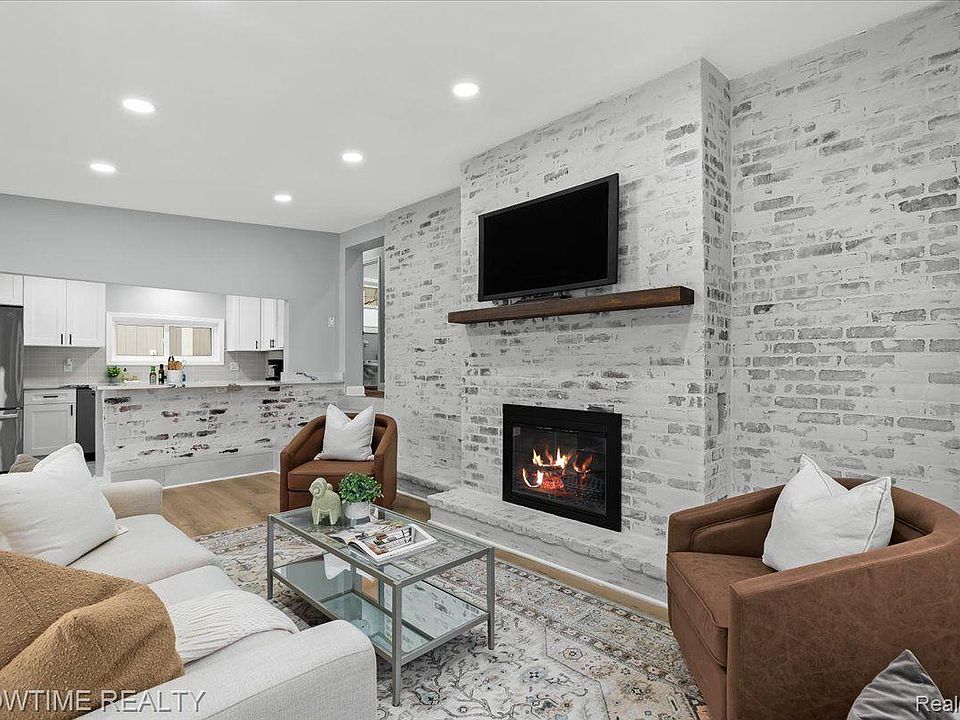 The interior features a thoughtfully designed layout, including updated finishes and stylish touches throughout. The living area flows seamlessly into the dining and kitchen spaces, creating an inviting atmosphere.