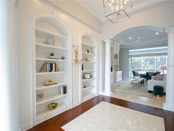 AMAZING VALUE and BELOW APPRAISAL. NEW PRICE!! Former Neal model home in the exclusive University Park Country Club neighborhood of Lansdowne Crescent. Three large bedrooms and 2 1/2 bathrooms plus an office. This is a beautiful open plan with exquisite details in every room. The bright and airy Master Bedroom has gorgeous ceiling details and access, through double doors, to a NEWLY RENOVATED en suite bathroom. The renovated bath features reconfigured dual walk in closets, a new marble vanity, new luxury sized tub and custom painted wall treatments. The kitchen is part of an open plan and has been NEWLY RENOVATED with light cabinets and new granite on the breakfast bar/ island. The formal dining area features wainscoting details and is adjacent to the entry gallery that has built in shelves and marble flooring. The office has built in shelving, desk and custom built in seating. Off of the great room and master bedroom is the large caged pool and spa. The home looks out to a greenbelt and golf course view. Lansdowne Crescent is "maintenance free" as the association is responsible for lawn care and irrigation. Membership in the Country Club is mandatory. Please see attachments for specifics on memberships and fees.
