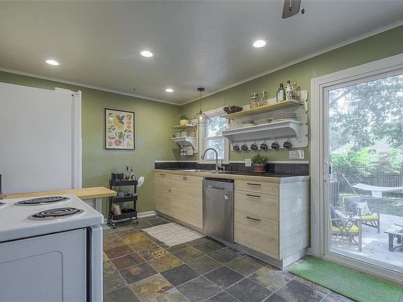 Cute as can be, this 3 bed, 1 bath home boasts two bedrooms on the main floor and an expanded attic with two living areas. Enjoy cooking in the updated kitchen with fresh new cabinets, soft close drawers, new dishwasher, and new stone floor, which overlooks the landscaped fenced-in backyard and updated patio. Newer driveway with bonus parking spot PLUS attached garage. Backyard also has rain barrel, tons of gardening space, and storage shed. Spacious and clean epoxied basement.